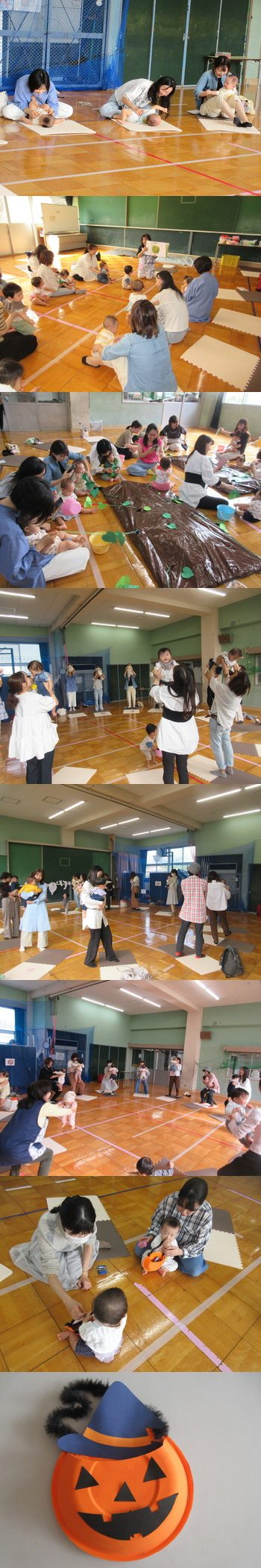 24日:季節の歌「大きな栗の木の下で」をみんなで歌って秋を感じました。またベビーサインの「おいしい」「たのしい」「おしまい」を紹介してお母さんと一緒にやってみました。ハロウィンの紙皿で作ったカバンにパーツをつけてジャックオランタンにしながらママどうしで会話を楽しみながら過ごしました。 |