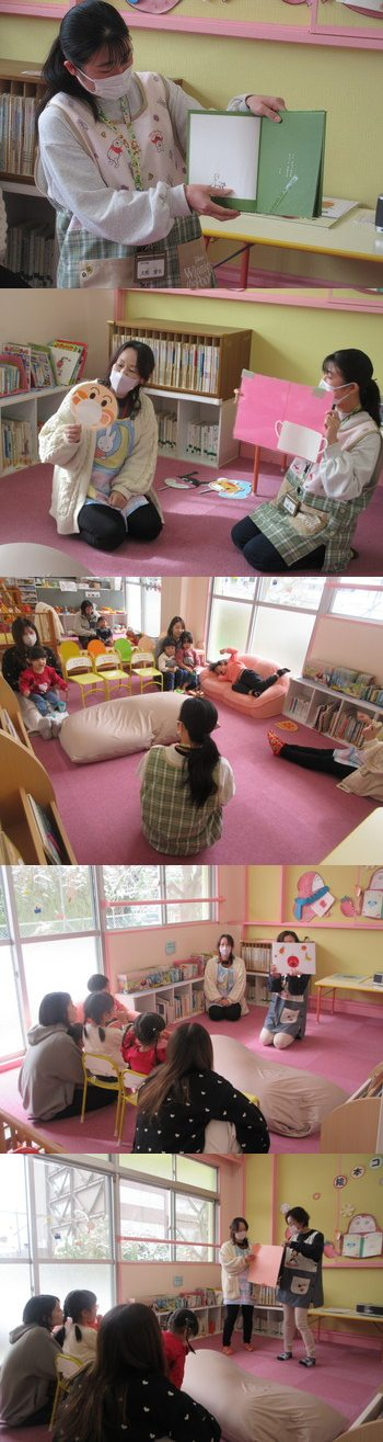 20日:今回は男の子ばかりの参加になりましたが「ひな祭り」前ということでひなまつりリースを作りながら交流しました。ひなまつりの思い出話をしながら楽しい会話で盛り上がりましたよ。「おひなさまはだあれ」のパネルシアターも見ました。 |