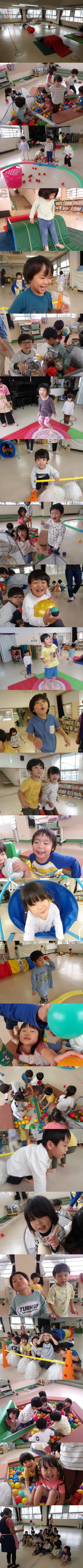 秋の遠足予定日・・・空からは小雨がぽつぽつと地面を濡らし「あ~今日は中止かぁ」と肩を落としていたところ、ばら組の先生たちが「今日は、ツナグテに行けない代わりに、オキノテやっちゃうよ!!」と、ホール内に特性の遊び場を準備して、「岐阜市沖ノ橋子育て支援施設オキノテ」をオープンさせちゃいました! 正直、「本家を超えるおもしろさカモ?」と感じるような遊び場で、子ども達の笑顔の花が咲き乱れました☆こんなふうに、すぐに切り替えて楽しい遊びを展開できるなんてステキですね♪大満足のばら組さんでした☆